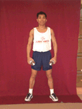上臂二頭肌的鍛鍊 1.雙腳與肩同寬站立,雙膝稍微彎曲,上腹部用力,把肌肉 縮緊,背部挺直。雙手垂於身體前,各握一重物,如水瓶或書 本等。 2.彎曲手肘,慢慢將重物舉起到肩膀的高度,保持這個姿勢 ,再慢慢把手放下,回到原來的姿勢。每次大約持續做12到 15次。 |