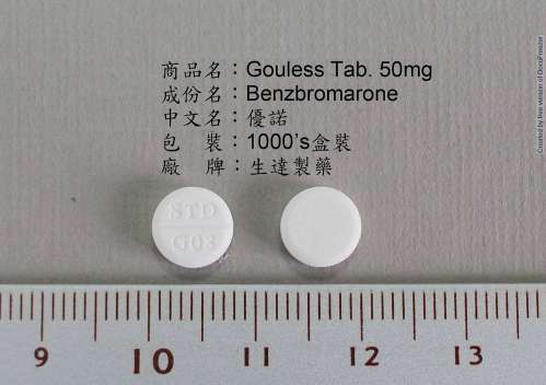 GOULESS TABLETS 50MG "STANDARD"(BENZBROMARONE) 〝生達〞優諾錠50公絲(本補麻隆)