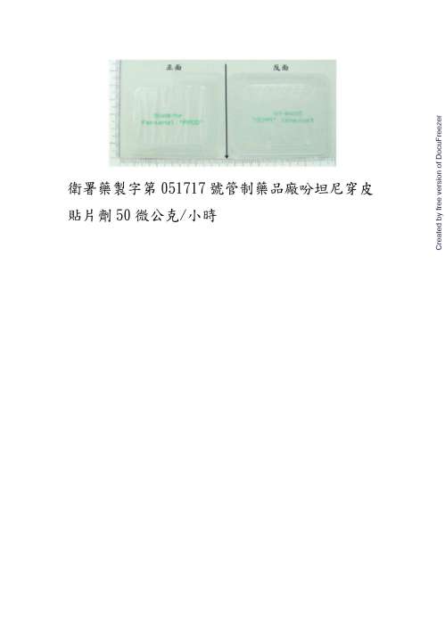 “管制藥品廠”吩坦尼穿皮貼片劑50微公克/小時Fentanyl Transdermal Patch 50 μg/hr “PPCD”