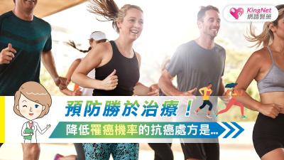 多數人都知道運動對健康帶來的好處很多,其中很重要的好處即是降低20%罹患癌症的風險,每天規律的運動30分鐘就可降低罹患大腸癌、乳癌和子宮內膜癌的風險,運動甚至是...