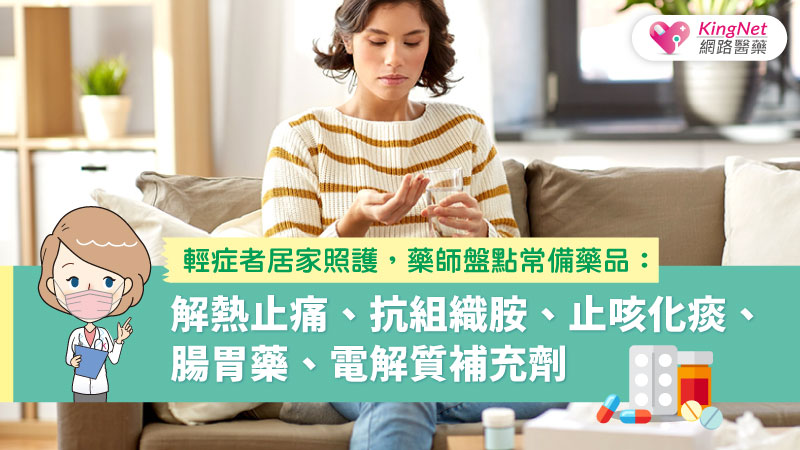 輕症者居家照護,藥師盤點常備藥品:解熱止痛、抗組織胺、止咳化痰、腸胃藥、電解質補充劑
