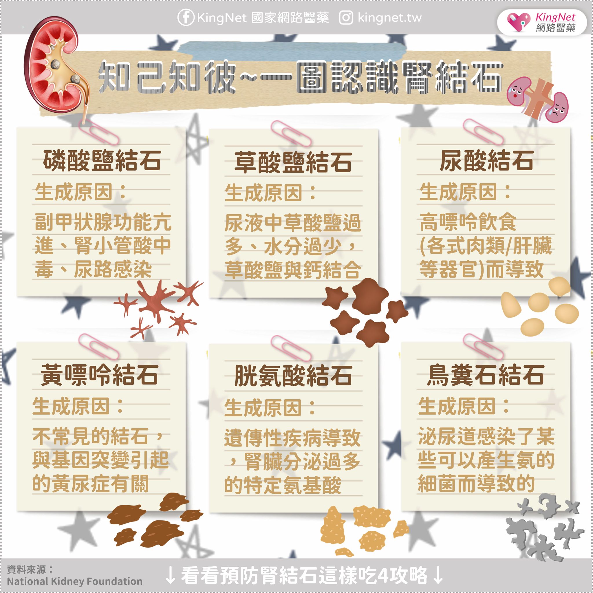 推薦閱讀:腎結石種類有哪些、有哪些症狀?預防腎結石這樣吃