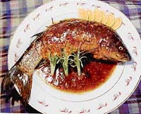 3.高湯煮滾放入所有2料煮滾芶芡淋於魚身上即可。