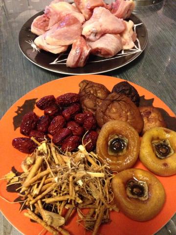 雞肉,九尾草,紅棗,柿乾,香菇,米酒