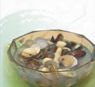 蒜頭加水煮開後續煮5分鐘後,加入蛤蜊,待殼一張開加入調味料熄火起鍋。