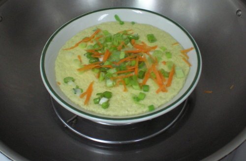 水煮沸後將雞蛋加鹽加水等材料混合放入碗中