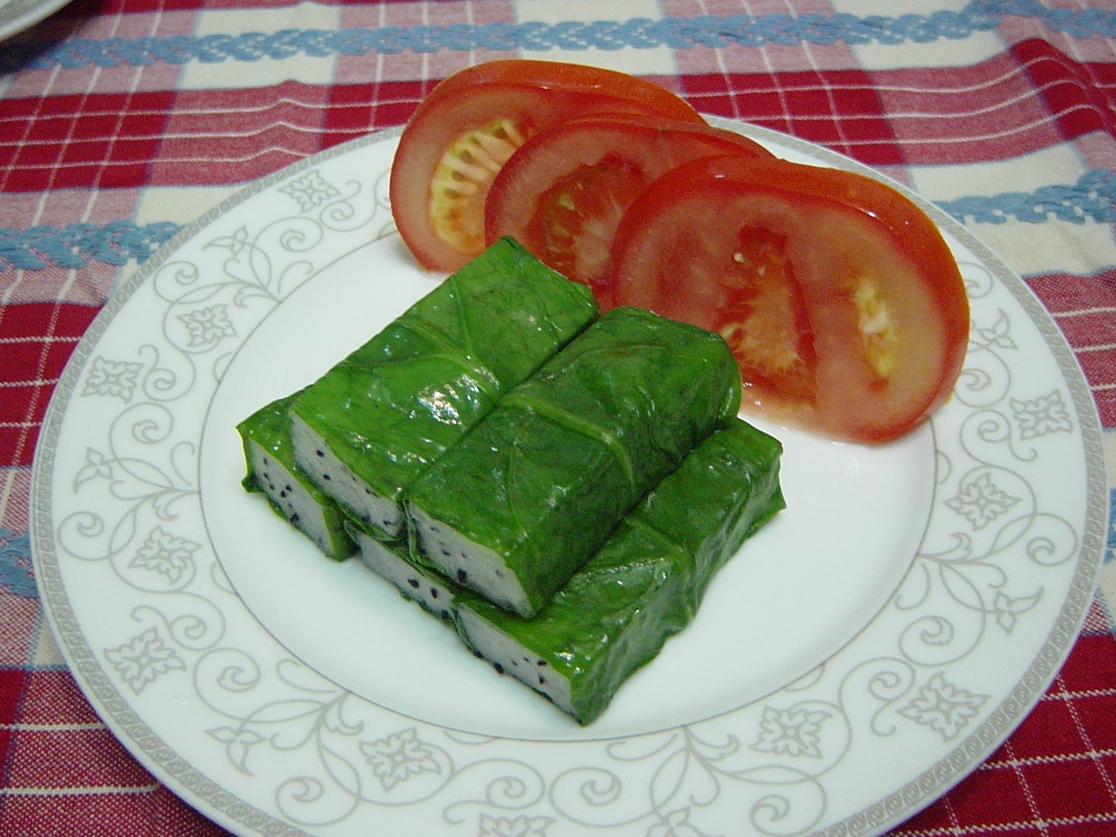 6.選擇波菜葉面較大的較好包裹火龍果條