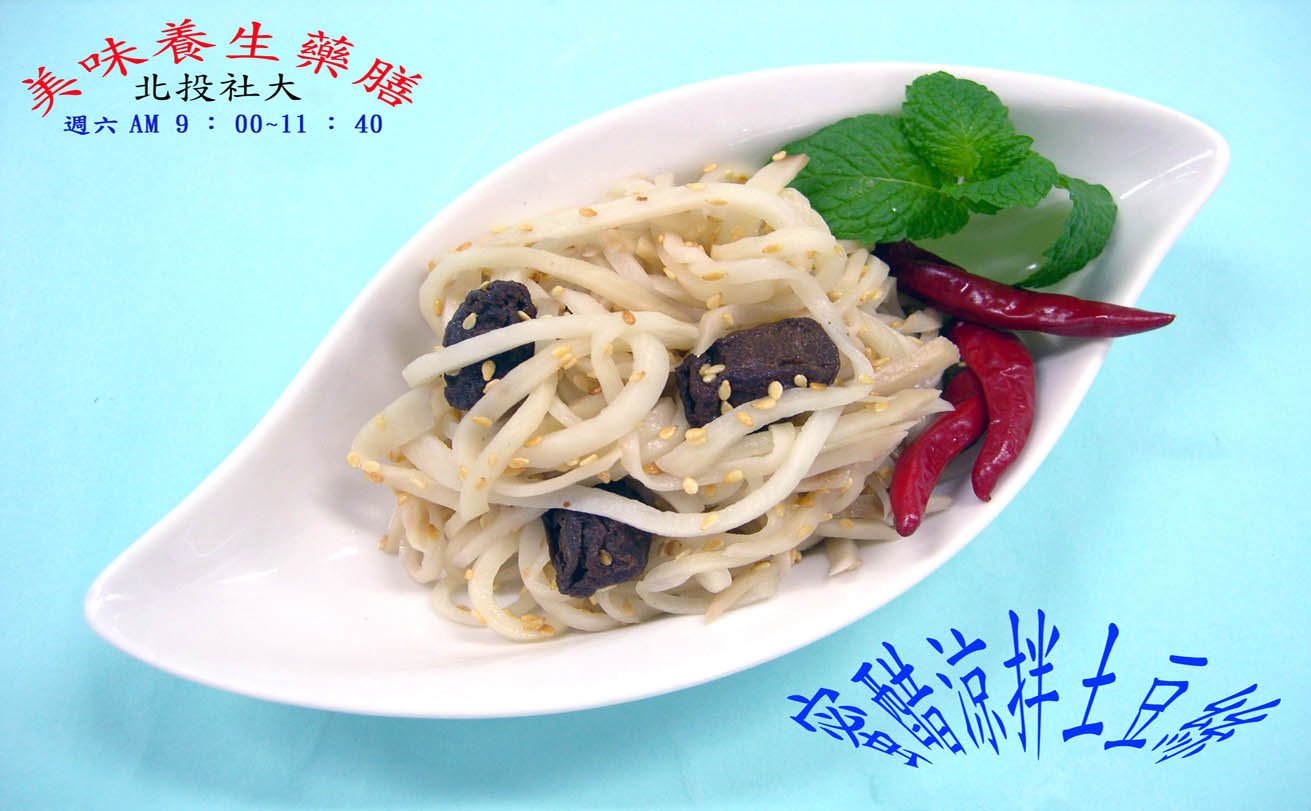 這是我於北投社大97年度第一學期;美味養生藥膳班所教的一道涼拌菜非常美味鮮甜,食材便宜作法又簡單;還能達到減重效果、又能攝取到日常生活所需的營養素。同學們也都非常喜愛,特別拿出來與大家分享!希望您們也會喜歡!