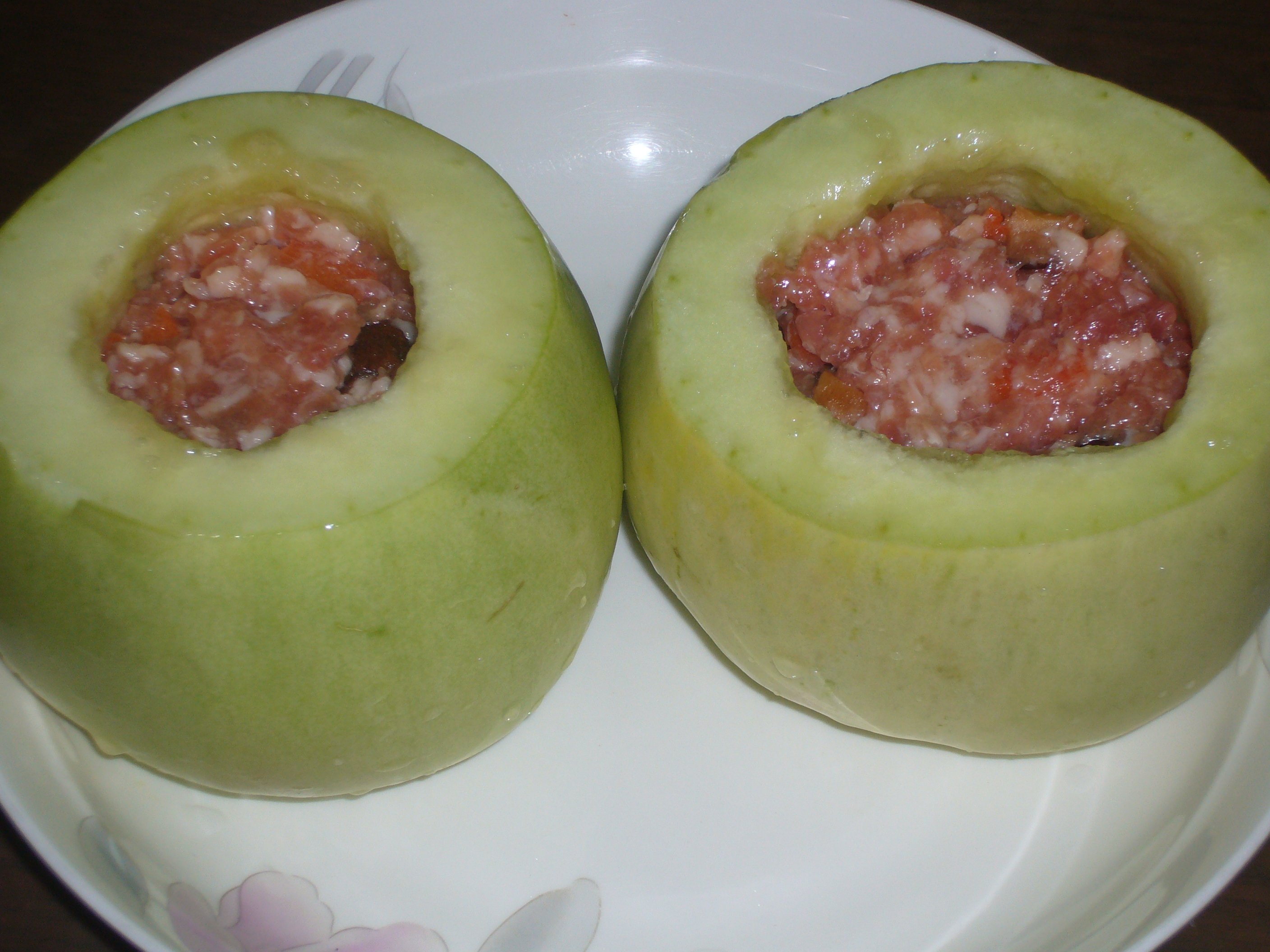 3.將拌好的肉餡裝填入挖空的美濃瓜中