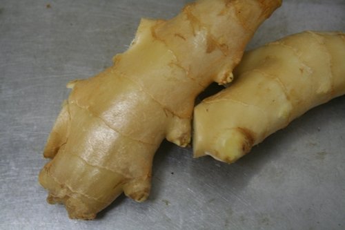 3、炒鍋加沙拉油,薑片爆香,加入南瓜翻炒一下