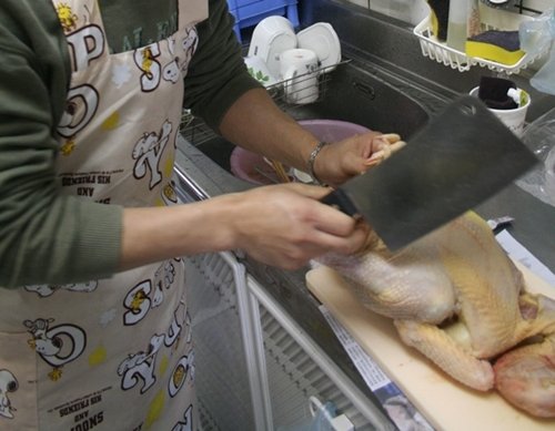 1.雞切成塊狀,起一鍋水煮滾,將雞塊倒入燙過,將多餘血水雜質燙出,然後用冷水將雞肉沖洗乾淨