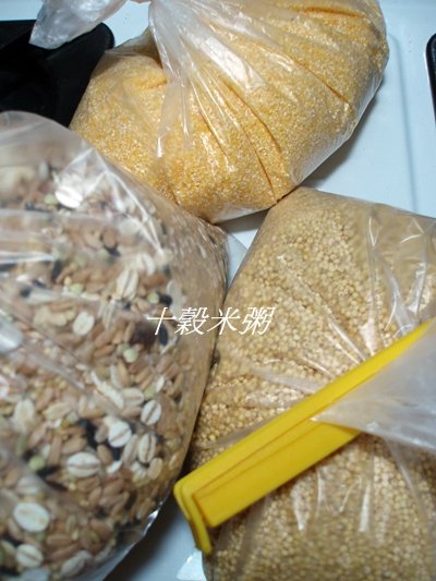 1.十穀米1/2杯、白米1/2杯、小米1/4杯、玉米碎1/4