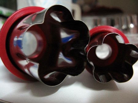 5.用大圓壓出型,在用小花在圓中壓出型,三種顏色互相組合,變換花色
