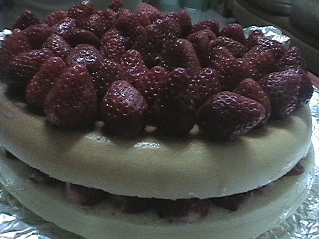 6.倒扣到盤子上,就可裝飾草莓(淋些煉乳或夾入內餡草莓或蜂蜜或巧克力醬!
