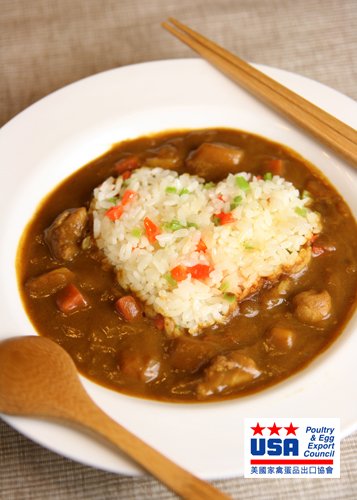6.最後加入美國雞丁,加鹽、黑胡椒粉調味,使之入味後,淋至飯上,即完成。