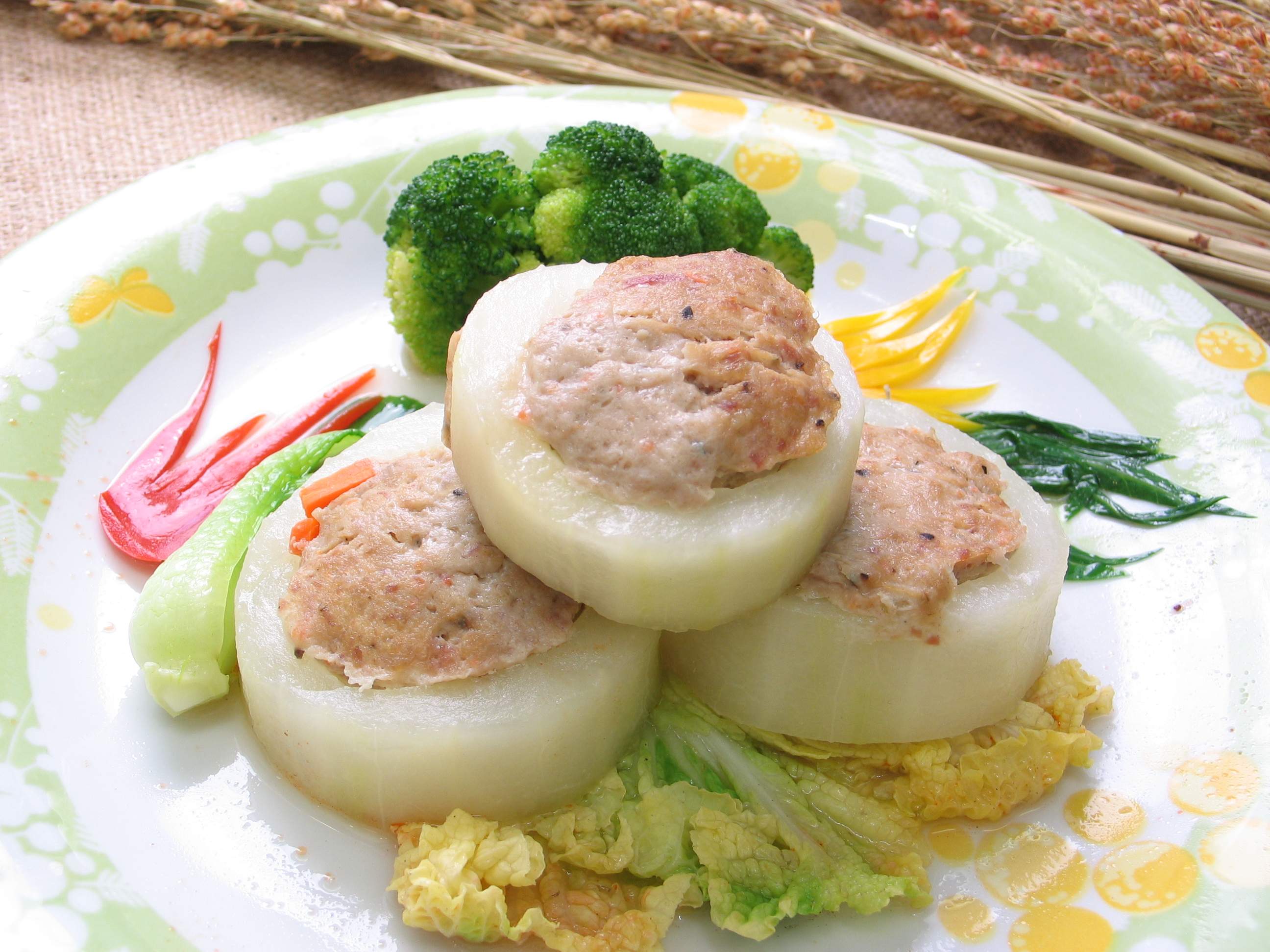 3.將雞肉丁、胡蘿蔔、香菜攪打成泥稠狀,塞入大黃瓜中,置入電鍋中蒸30分鐘,即可盛盤。