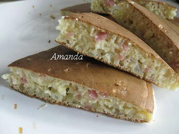 火腿可以改用培根,但是切丁後必須先下鍋炒出油脂,再加入麵糰裡。