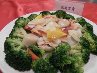 綠色花椰菜、玉帶、墨魚、蘭花蚌、彩椒、蔥、蒜。
