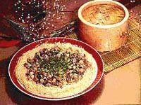 將蚵加上蔥花及鹽、糖少許稍炒後淋在炒熟的麵線上起可。