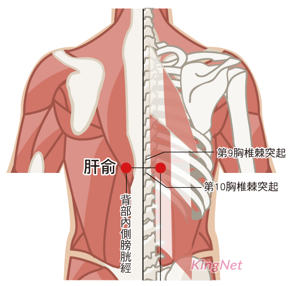 第四棘突下平行3寸,靠近肩胛骨內側緣。