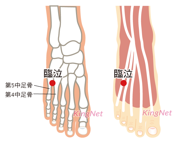 腳背,第四、五跖骨間靠近跖骨底的凹陷中,離無名趾、小趾趾縫間1.5寸。